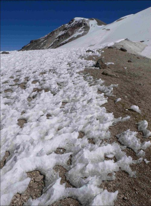 poměrně náročný, zledovatělý kus sněhového pole se skalním