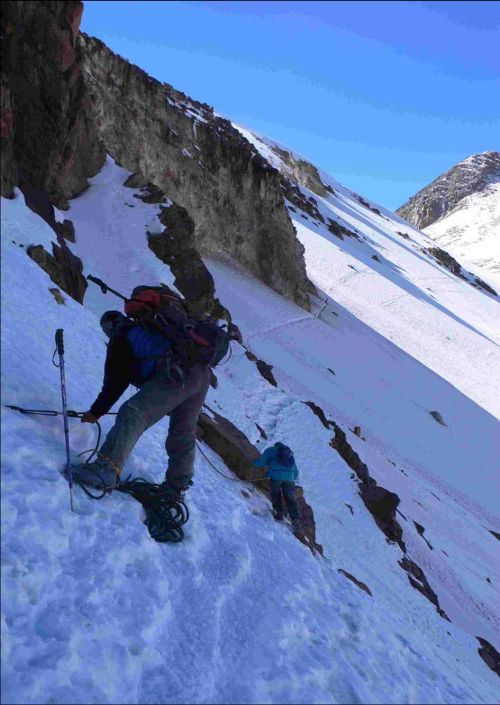 těch vystoupaných 300 m opět ztrácíme. Traverz je v jednom místě
